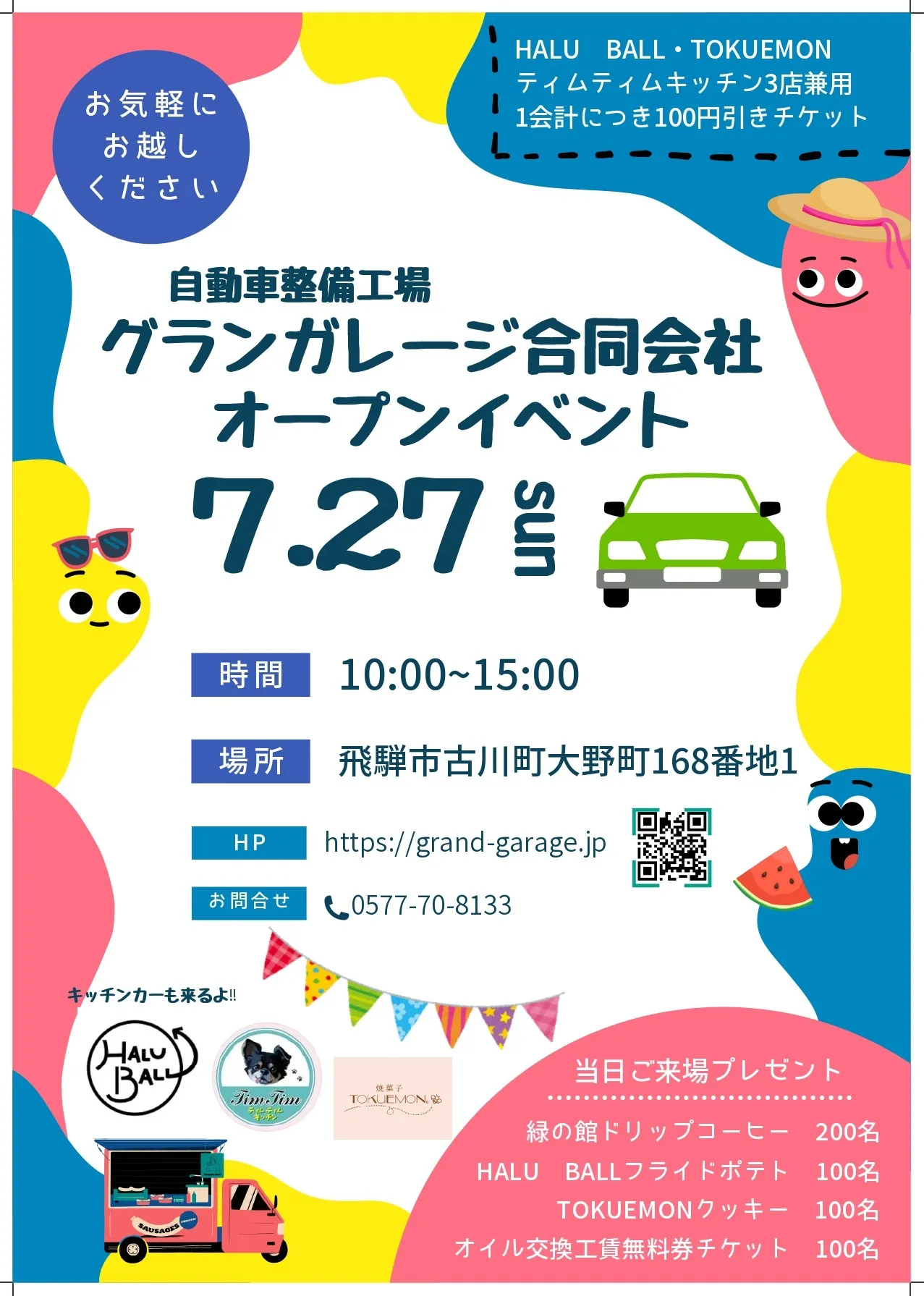 このたび「グランガレージ合同会社」では、地域の皆さまへの感謝の気持ちを込めて、オープンイベントを開催いたします!